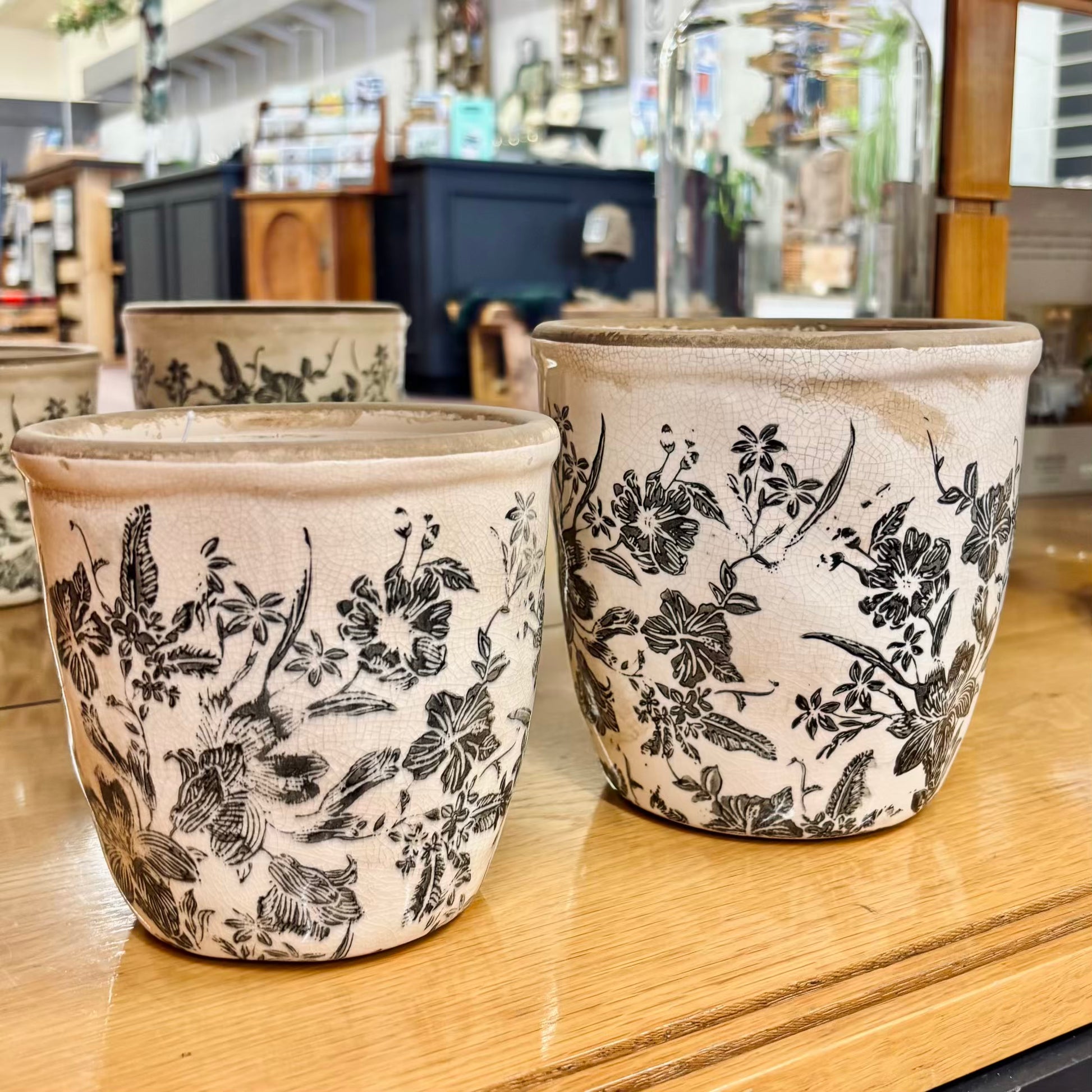 Black Floral Pots