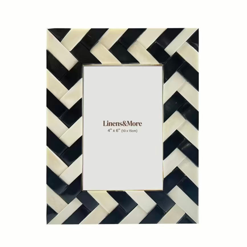 Showcase your cherished memories with elegance using our Braided Black & White Bone & Resin Frame.