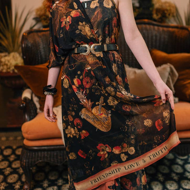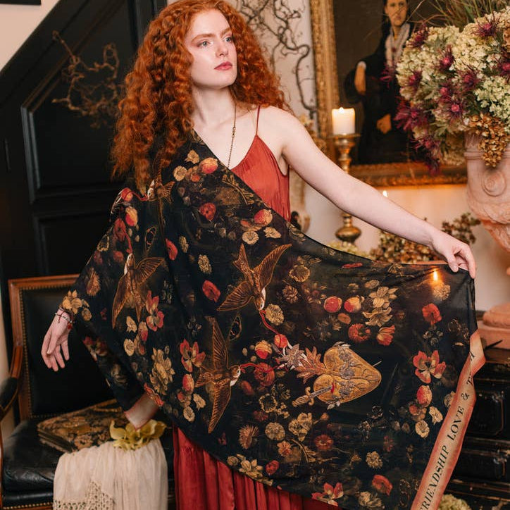 Heart of Gold Scarf with Swallows & Sacred Heart