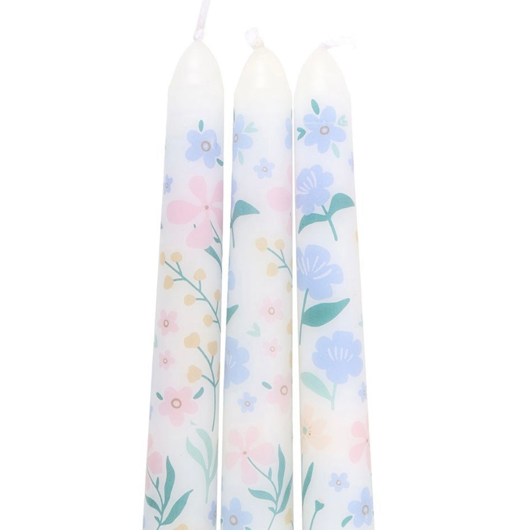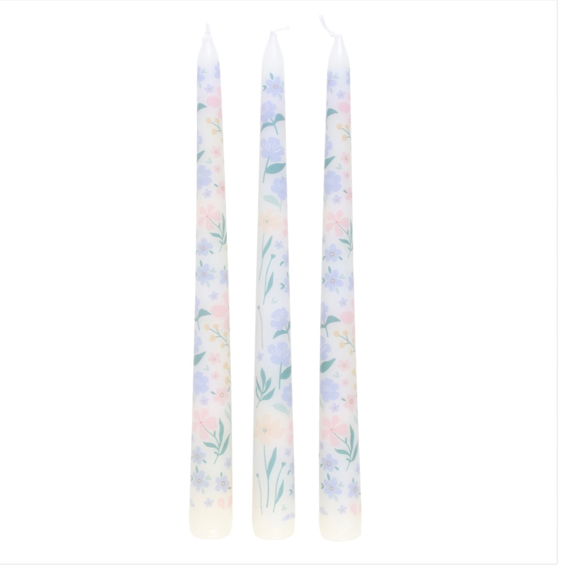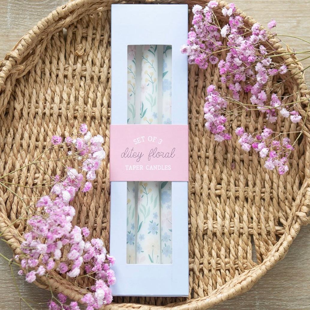 Create a warm and inviting atmosphere with the Set of 3 Ditsy Floral Taper Candles.