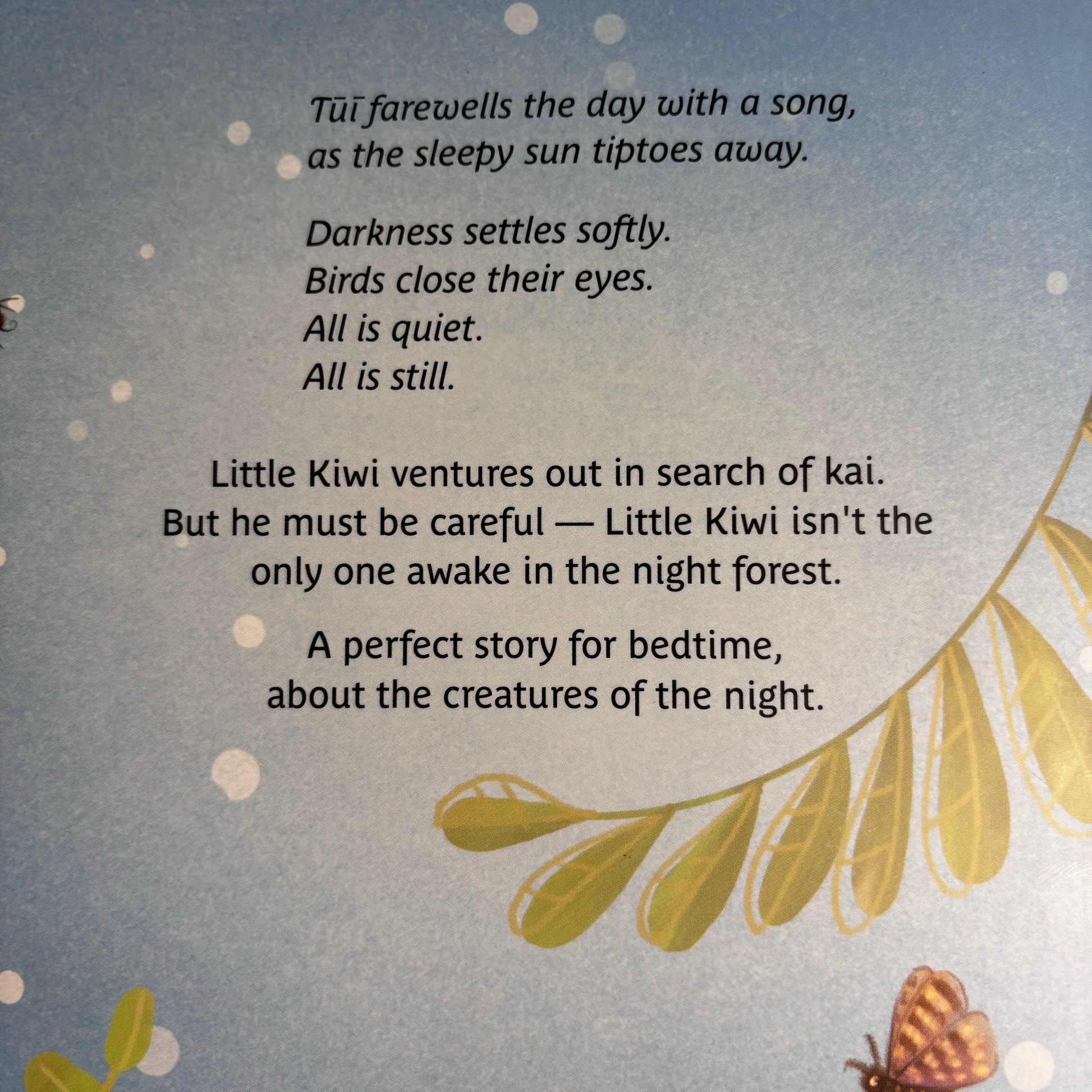 Little Kiwi ventures out in search of kai. But he must be careful - Little Kiwi isn't the only one awake in the night forest.