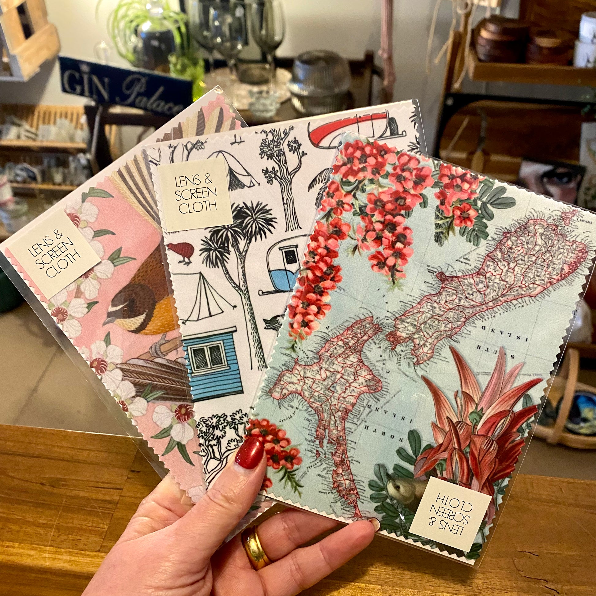This Wolfkamp & Stone Lens Cloth is perfect for keeping your lenses and screens clean and clear, featuring stunning NZ artwork.
